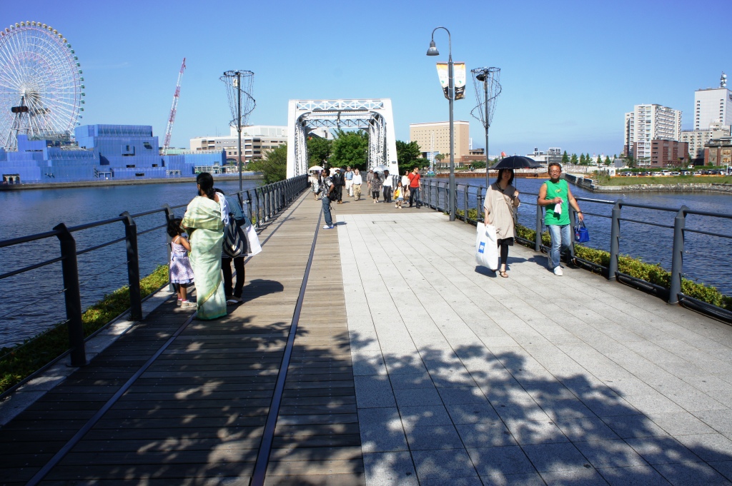 横浜で馬車道と言えば歴史的な名称ですが、同じような名で「汽車道」があります。こちらはみなとみらい地区の整備に合わせてつけられた遊歩道の名称ですけどね。桜木町の日本丸パーク付近から横浜ワールドポーターズなどがある人工島をつなぐ鉄橋です。かつて横浜駅と新港埠頭をつなぐ線路があり1989年に廃線になるまで貨物などが実際に走ってました。鉄橋が造られたのは1909年といいますから、既に100年以上が経過しているわけですから驚きです。現在は名残の線路がまだ残されており、生糸貿易などでにぎわった往時の歴史をかみしめながらの散歩ができます。といっても、やっぱり売りは夜景でしょう。ライトアップされた日本丸やランドマークタワー、凱旋門のような形をしたナビオス横浜などロマンチックな気分が味わえます。