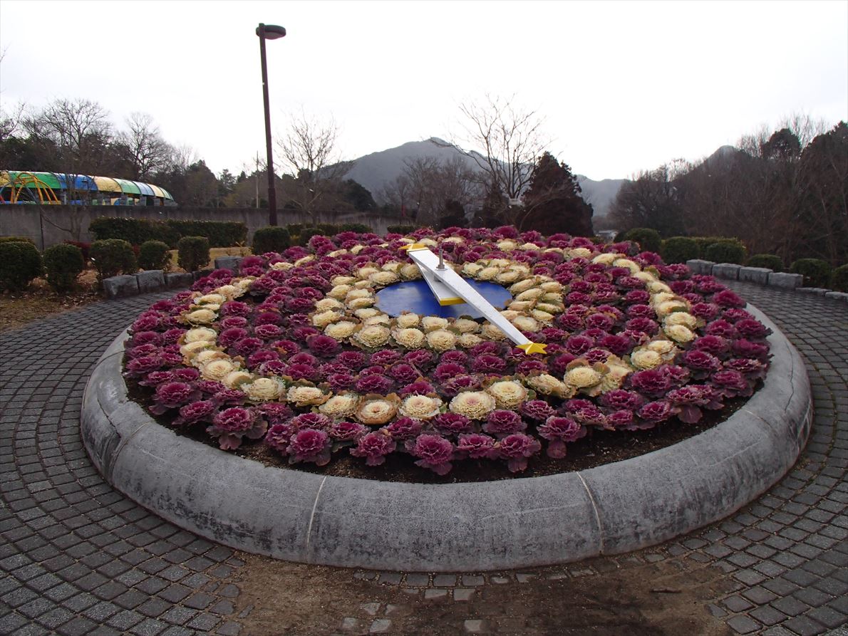 巨大な花時計があります。これは、「花時計」で平成6年にGPSで正確に測量された 「もう一つのへそ=平成のへそ」地点に設置されています。
