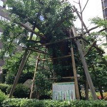 熊本から持ってきた銀杏の巨木がまだ残っていて、解説の碑文が歩道沿いにあります。