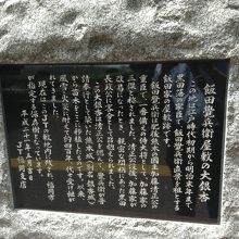 飯田覚兵衛は、加藤清正の重臣でしたが、加藤家改易後、黒田長政に仕え、この地に屋敷がありました。