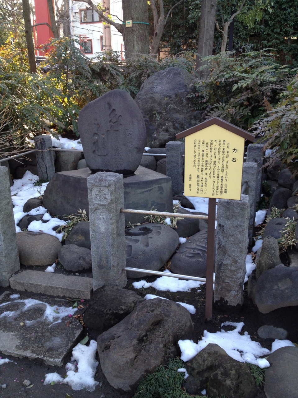 流行にあやかって?、この力石は、境内で行われた力くらべ大会で使われた石らしいですが、江戸時代の庶民の娯楽を伝える面白い展示?です…