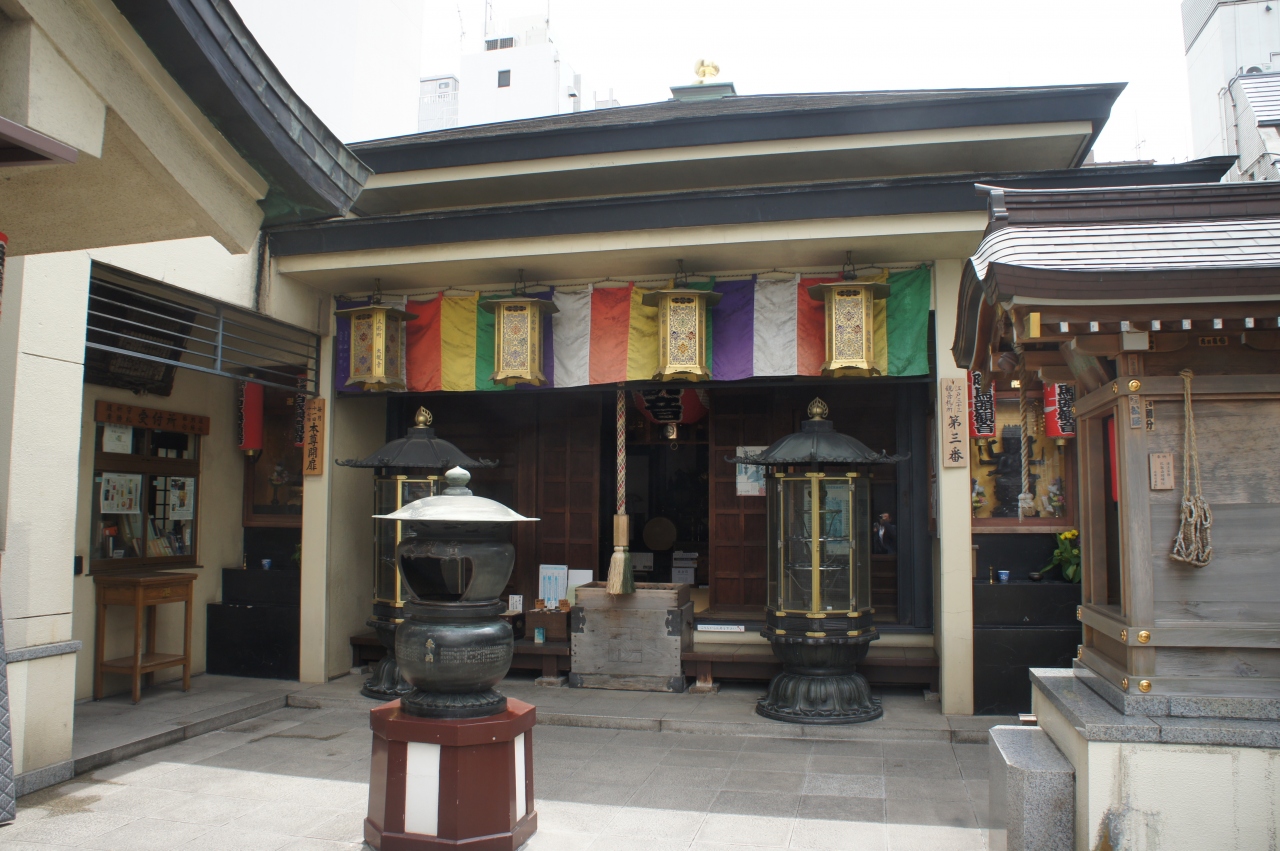 大観音寺は、人形町通りのちょっと奥まった場所。階段を上がって、二階に本堂があり二階に本堂がある都市型の建物です。創建は、明治13年。