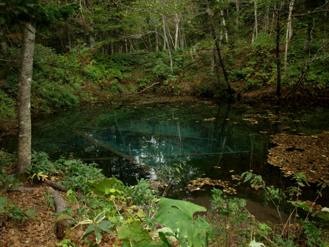 摩周湖の地下水によってできた、青い清水を湛える小さな池です。
