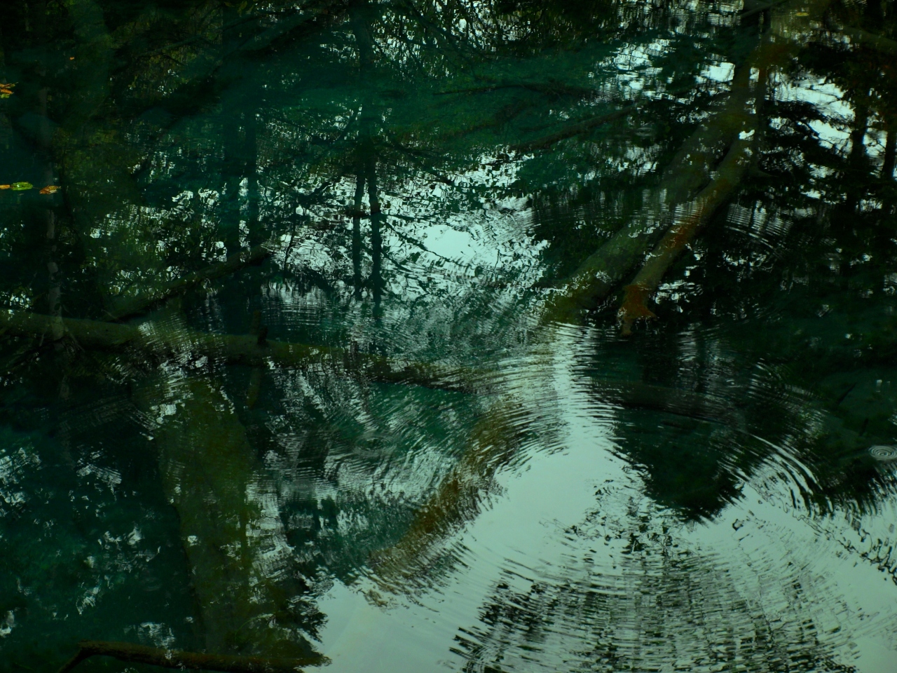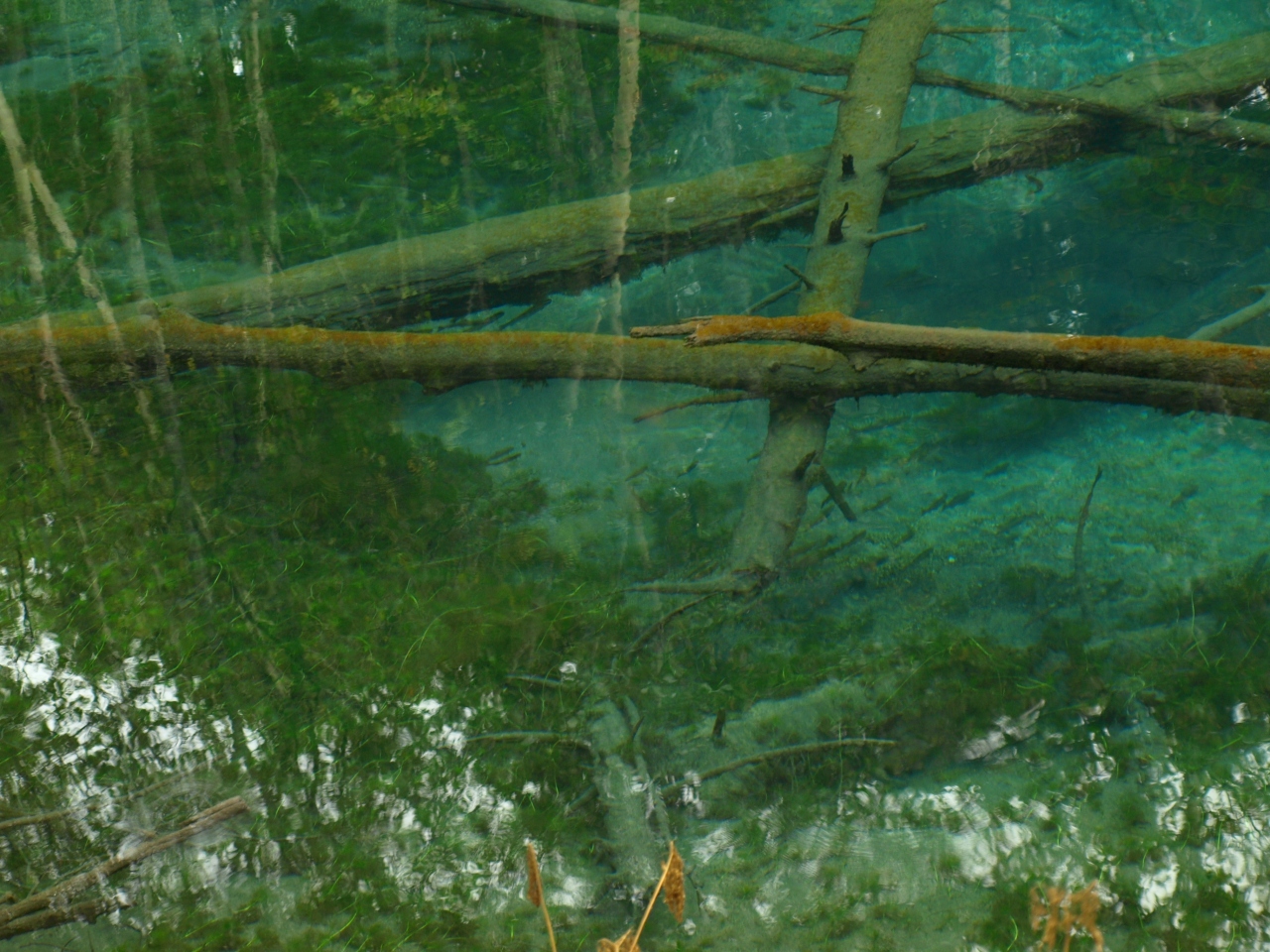 水温が年間通して8℃と低く、倒木が青い水の中に腐らずに化石のように沈んでいます。