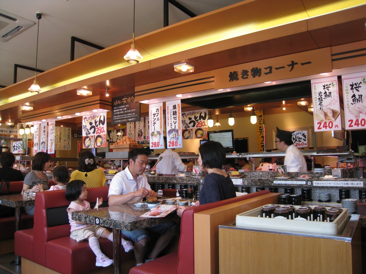 - 回転すしです。平日は、お昼にあら汁等の無料サービス有り。