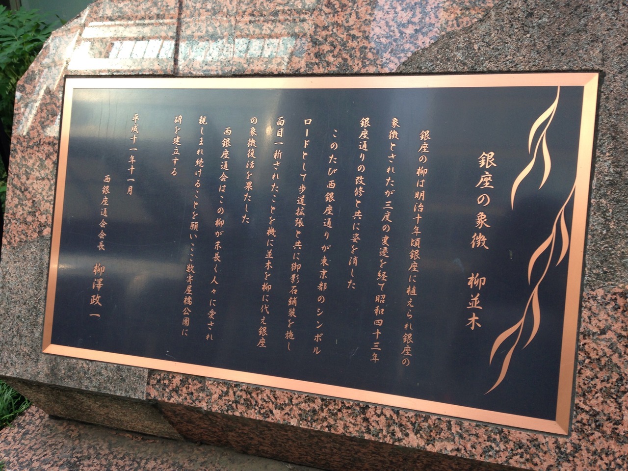 銀座の柳の復活を記念して置かれたものなんですね。