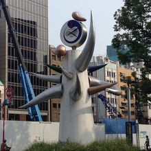 写真の岡本太郎のオブジェがすぐ近くにあり、目印になっています。