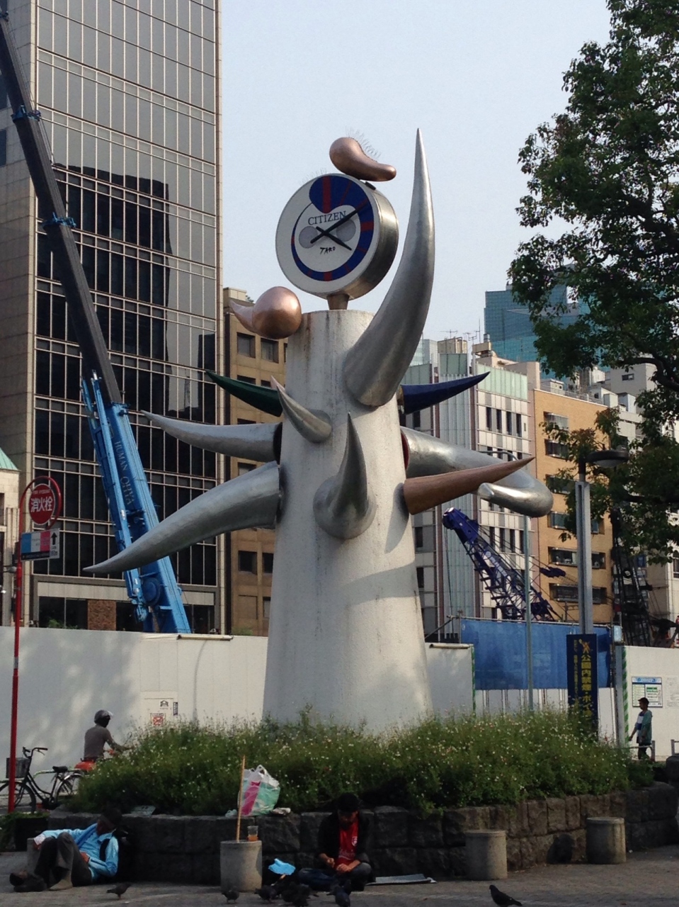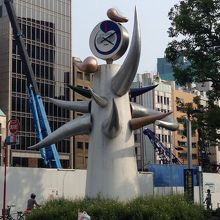 周りの建物が大きいため小さく感じますが、それでも立派な岡本太郎のオブジェが目印になっていて、とても目立ちます。