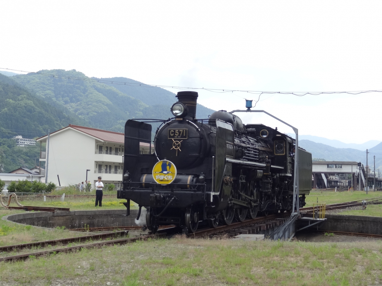 C56とは違い、往路は単独で運行、帰りはやっぱりディーゼル機関車に引っ張られて後ろ向きで帰ります。