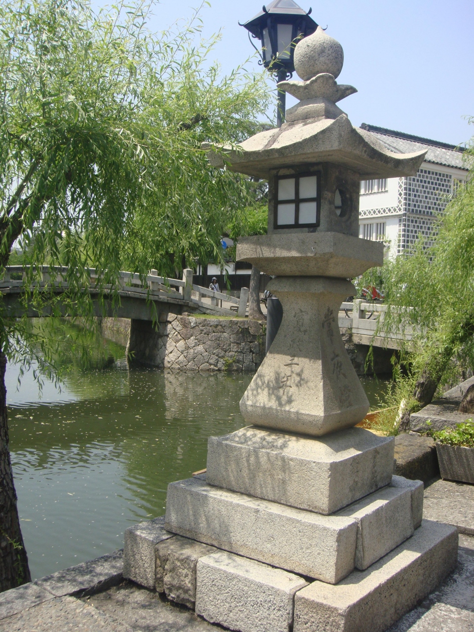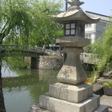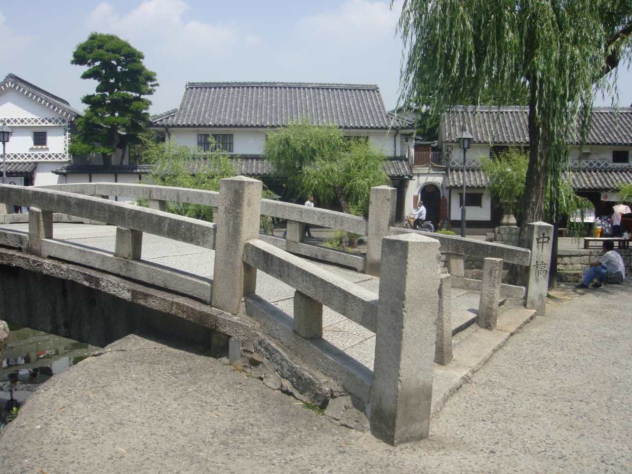 倉敷美観地区中ほどにある、倉敷川にかかる橋です。中橋は板橋を経て、明治10年に石橋に架け替えられて今に至っており、 橋げたが一枚石の太鼓橋でアーチ状になっており、下に船が通れるようにと配慮されています。付近には常夜灯や倉紡製品原綿積み降ろし場跡など船にまつわる歴史的建造物が多いです。