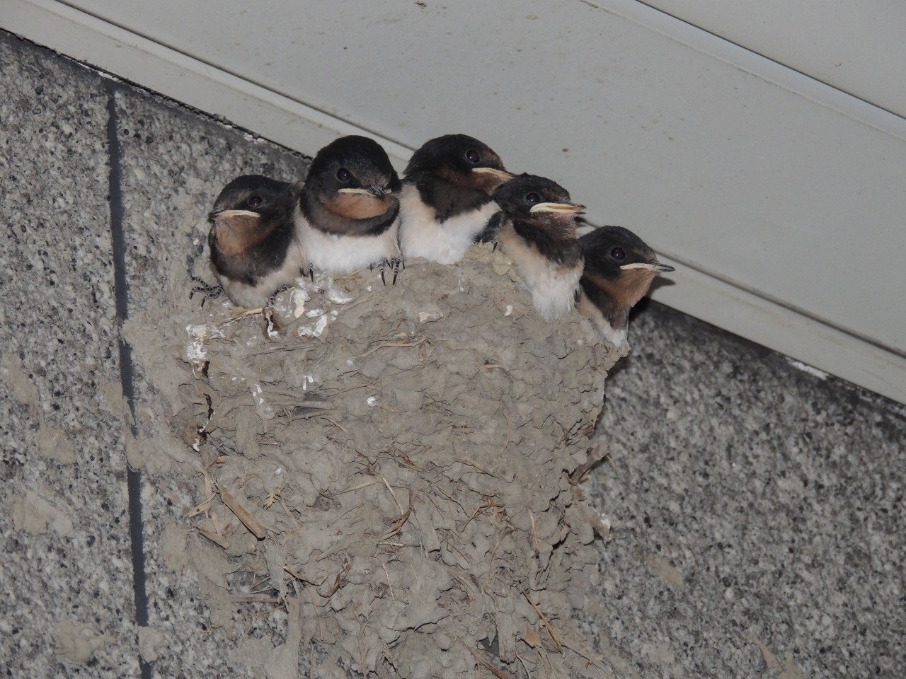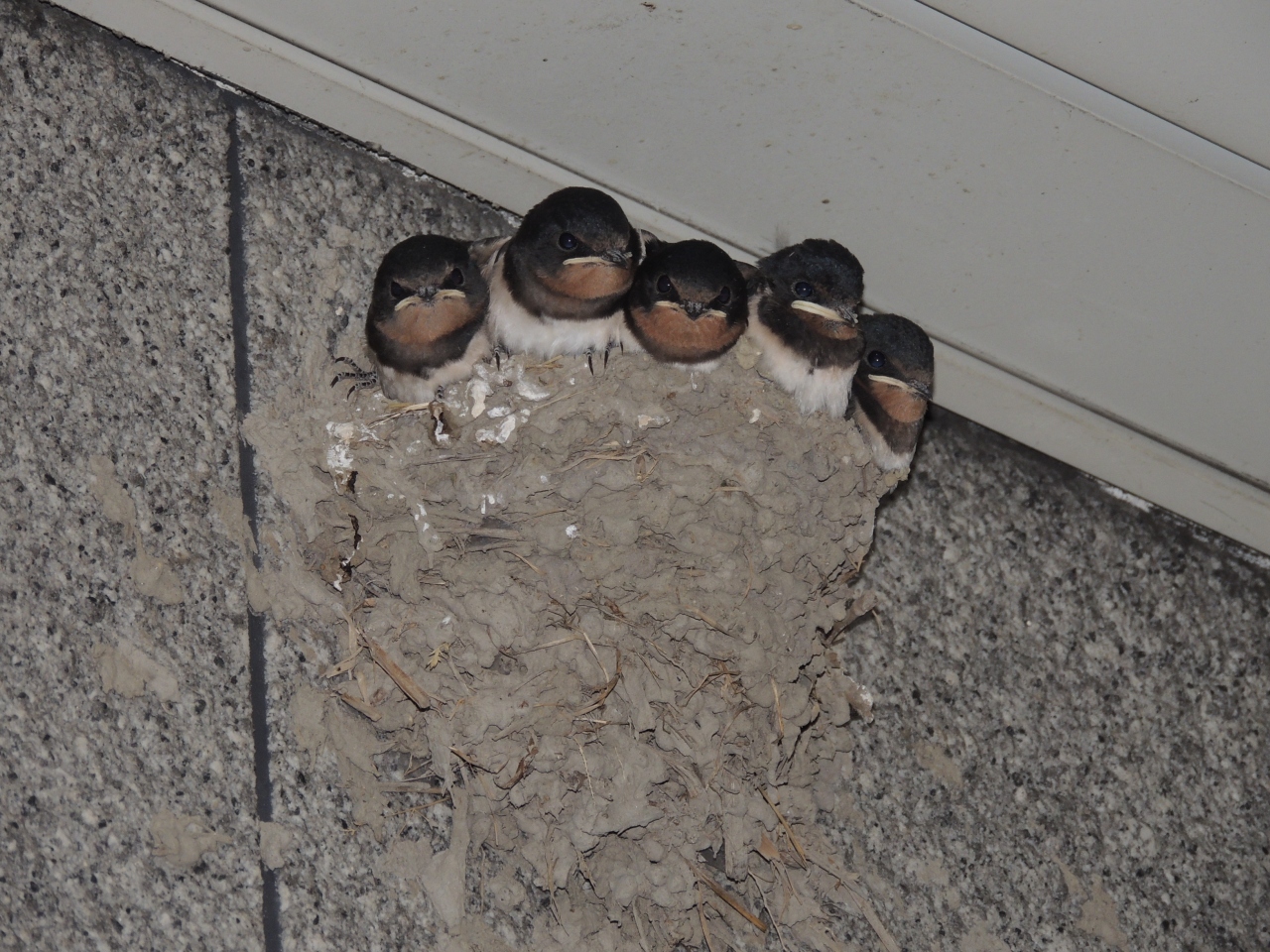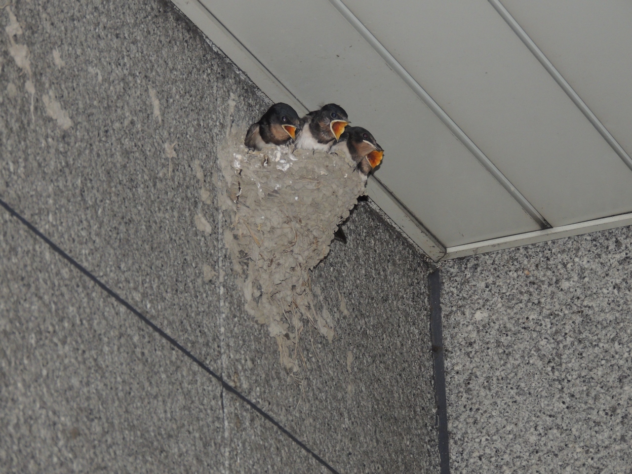 阪急電鉄・高槻市駅の建物の周辺に数か所のツバメの巣があります。ただいま子育ての真最中だす。親鳥がかいがいしくヒナに餌を運んでいます。音もなくスーと巣に戻るとヒナたちは口を目いっぱいあけ餌をねだっています。巣立ちももう少しかなというところです。ツバメの巣を見るのも久しぶりだなと思いカメラを向けました。