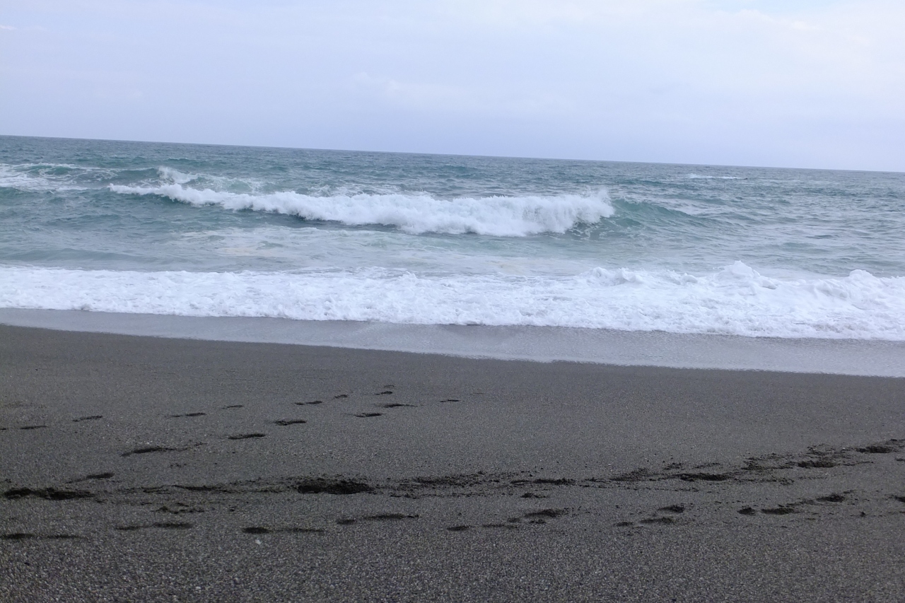正に正面は太平洋に面して位置し、竜王岬と竜頭岬の間に広がる砂浜。