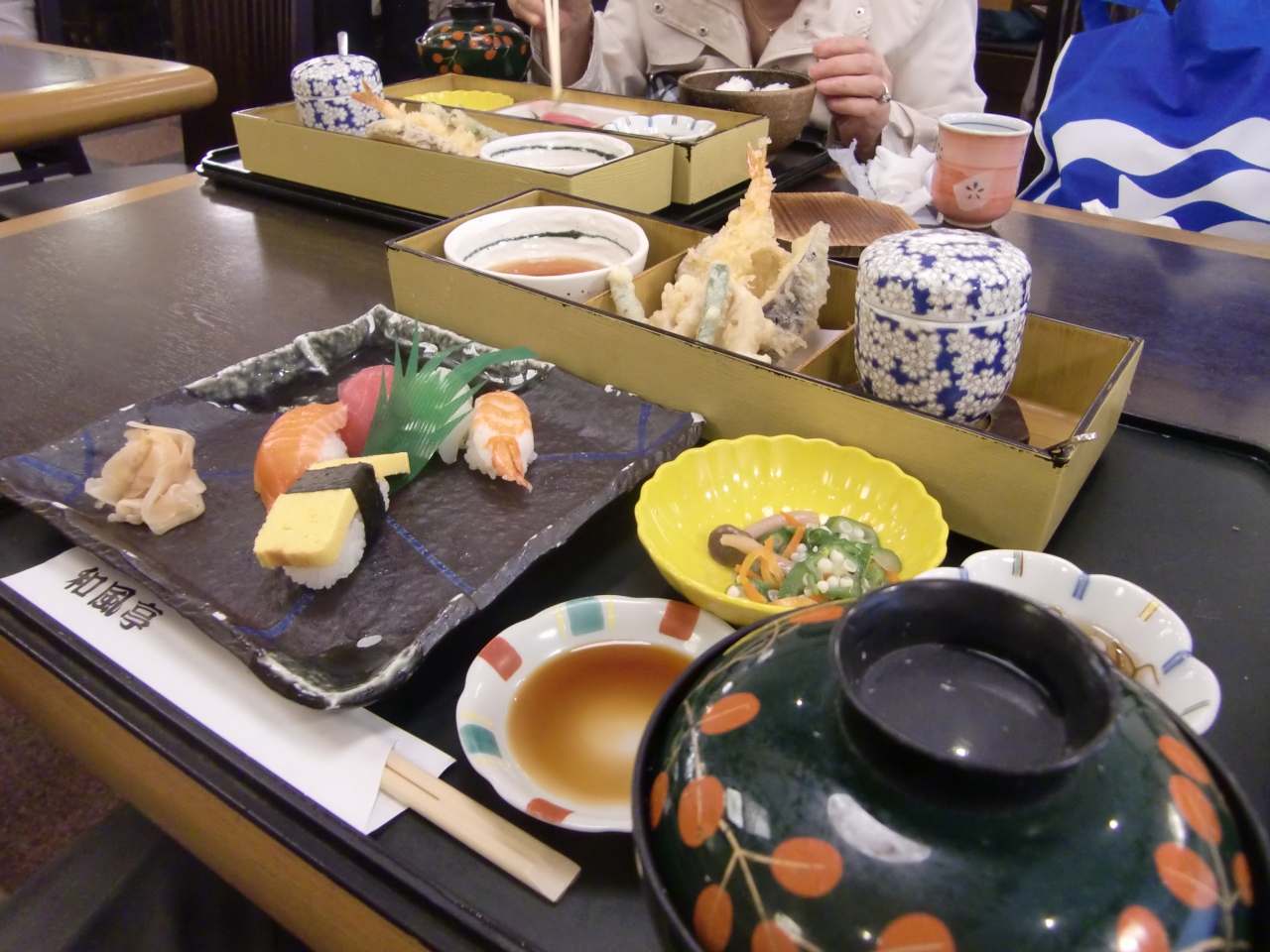 食事は、専門店「和食屋」さんで、お寿司定食、天ぷら定食を、頂きました。