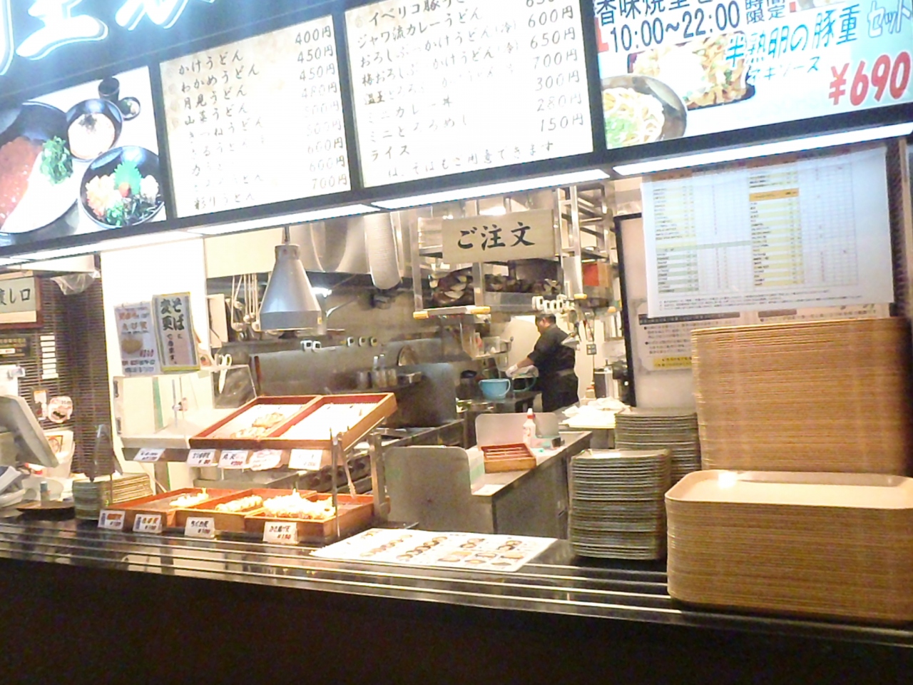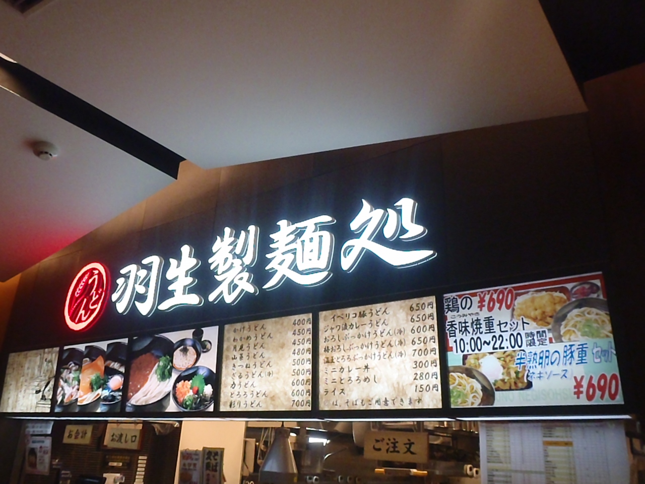 Pasar羽生のフードコートにあるうどん処、かけうどんなどの温かいうどんはリーズナブルだが、何故か冷やし系は比べると少しお高めです。