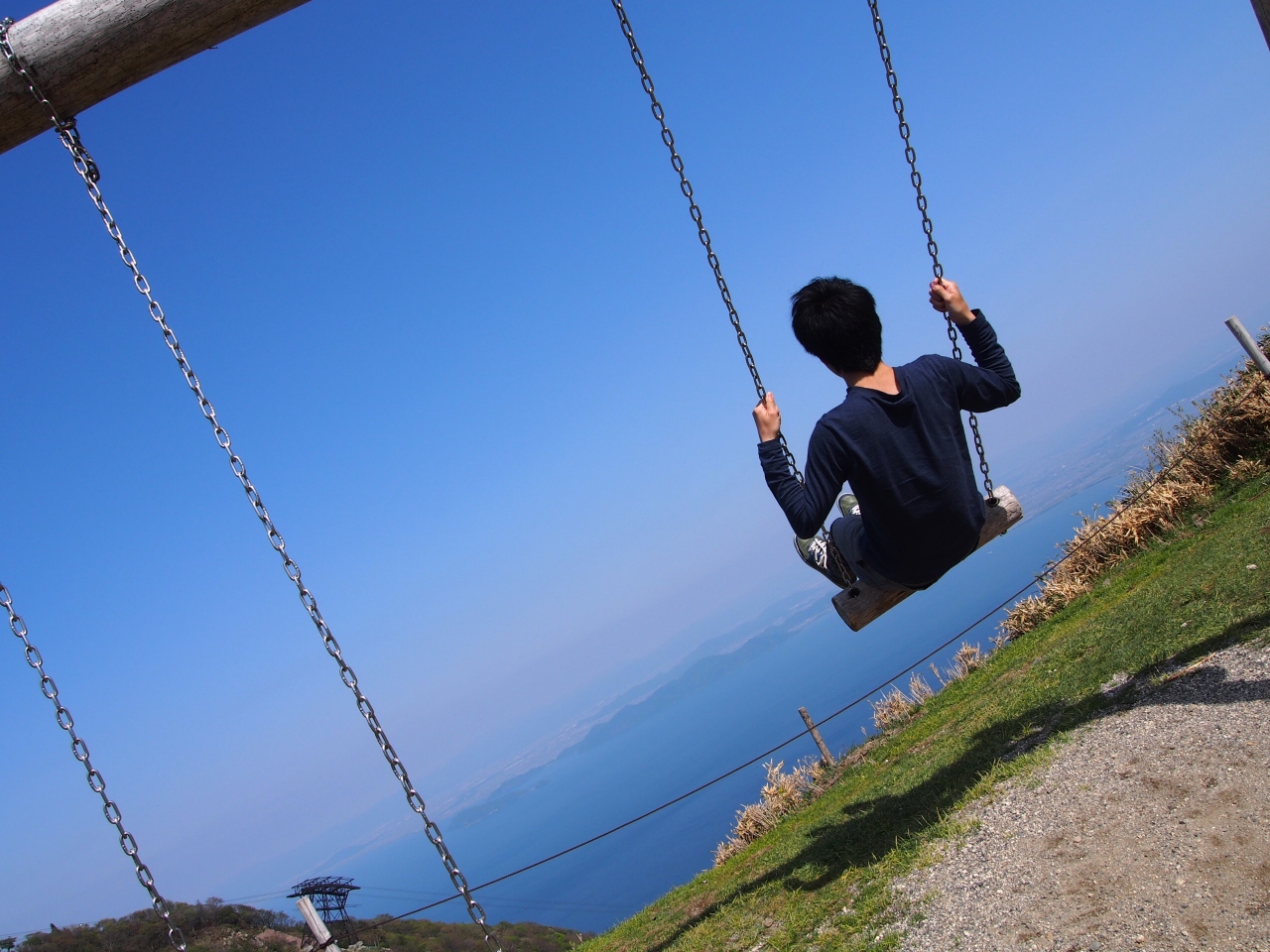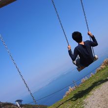 琵琶湖にせり出した場所にあるブランコはハイジ気分が味わえます。