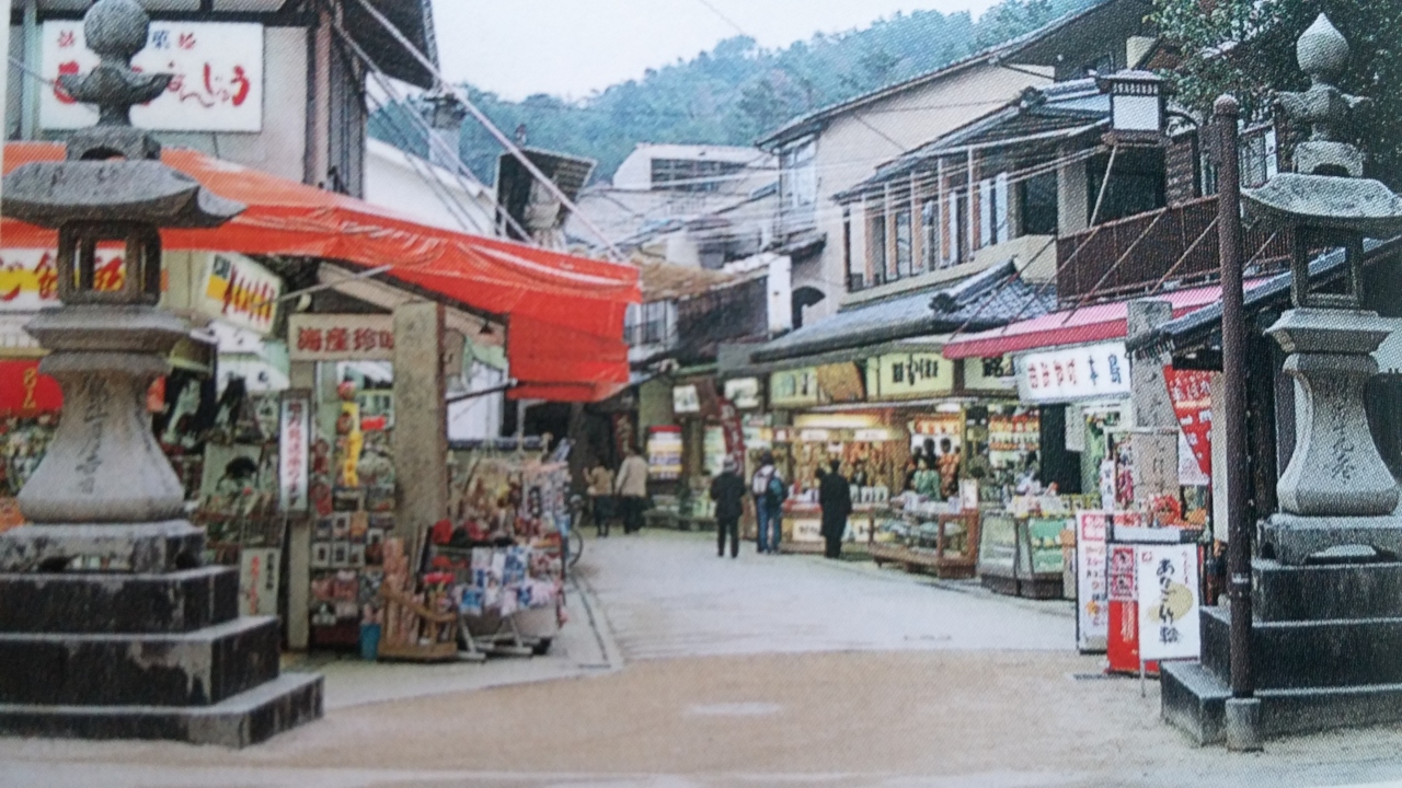 フェリー乗り場から厳島神社へ向かう途中にある商店街。