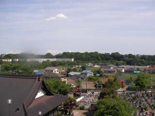 東所沢駅の近くの遠照寺の裏の農地が広がる台地から柳瀬川に下る道を進む自動車道から山道に入って下っていくと、古くからの住宅が続く先に鐘楼が見えてきて東福寺に着きました。山門をくぐると立派な本堂があり、裏手の台地の上には守護観音がありました。階段を上って台地の上にある守護観音に行ってみると、柳瀬川の緑地がよく見えます。