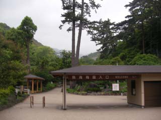 かんぽの宿別館から急な自動車道を下っていくと、熱海の街が一望できて急な斜面にホテルやマンションが建ち並んでいます。下りきったところに公園があり、寄ってみると熱海梅園でこの季節は地元に人が散歩しているぐらいで閑散としています。