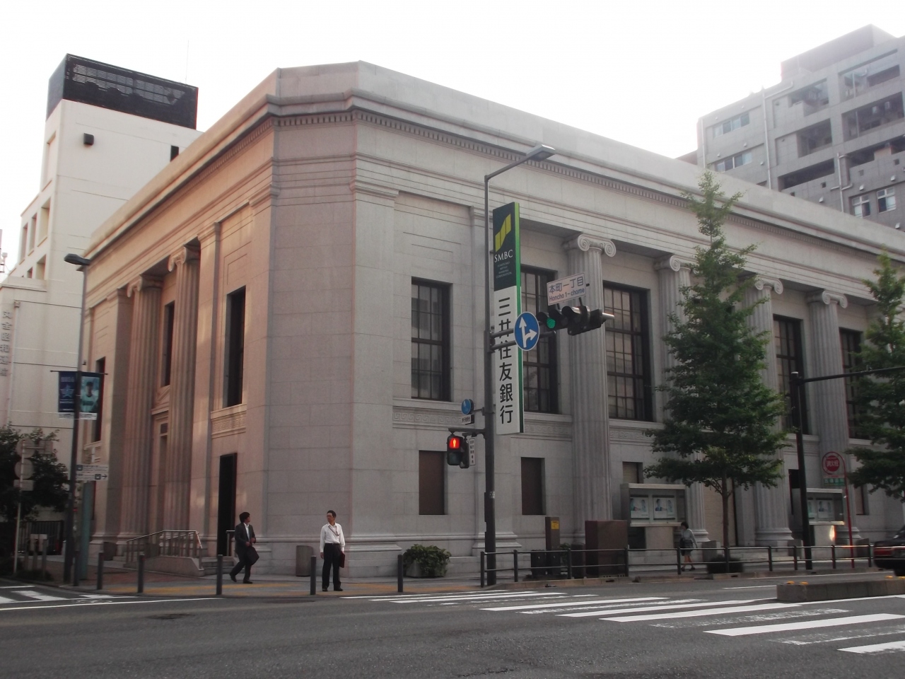 三井住友銀行の看板で営業中、ですから中に入れます。普通に銀行業務が行われています。