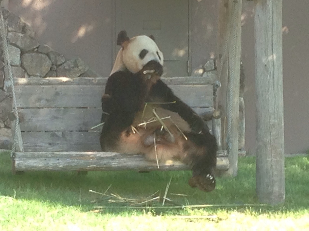 のん君2歳になって遅くも歩き始めてからのはじめてのアドベンチャーワールドです。特にパンダが好きなのん君、どんな反応かワクワク! 定番の大きなパンダと写真をとって!!!パンダを見て大喜びで!!!ライオン見て大騒ぎ!!!!、、、とはなかなか思いどうりには行かなくって、、、、好きなように自由に動き回りたいお年頃ののんくんはサファリバスも窮屈みたいで、つまらないところで、、、なんにもないところで、、、、楽しいみたい、親(ばあちゃんですが)としては パンダを見せたい、イルカショーを見せたい、象に餌をあげたい、、、、、と気持ちはあせるのですが、、、、お昼寝の時間と重なり、重要なところでぐずってばかりののんくんでした。 ですが、もちろん、たくさんの経験ができて大喜びでした。