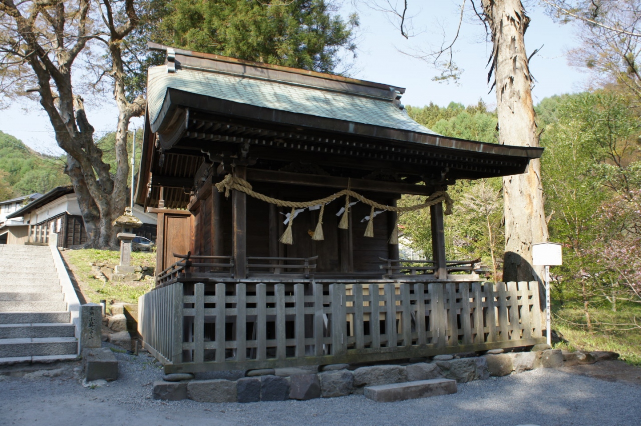 本殿の周りをお約束の四本の御柱が囲うように立っています。