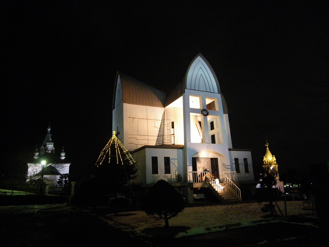 夜のライトアップされた教会も神秘的でとても素敵です。