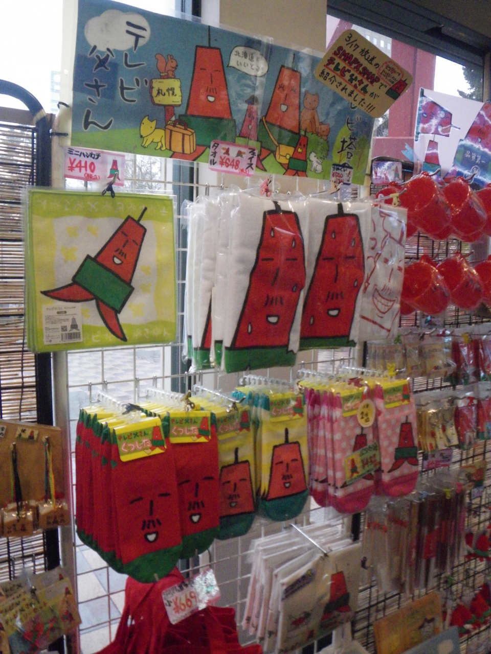 高さ142.7メートルの札幌のシンボルタワー。地上90メートルの展望台からは、まっすぐのびる大通公園の全景を見渡せ、札幌らしい景色を堪能できました。テレビ塔ゆるキャラのテレビ父さんグッズもたくさんありました。