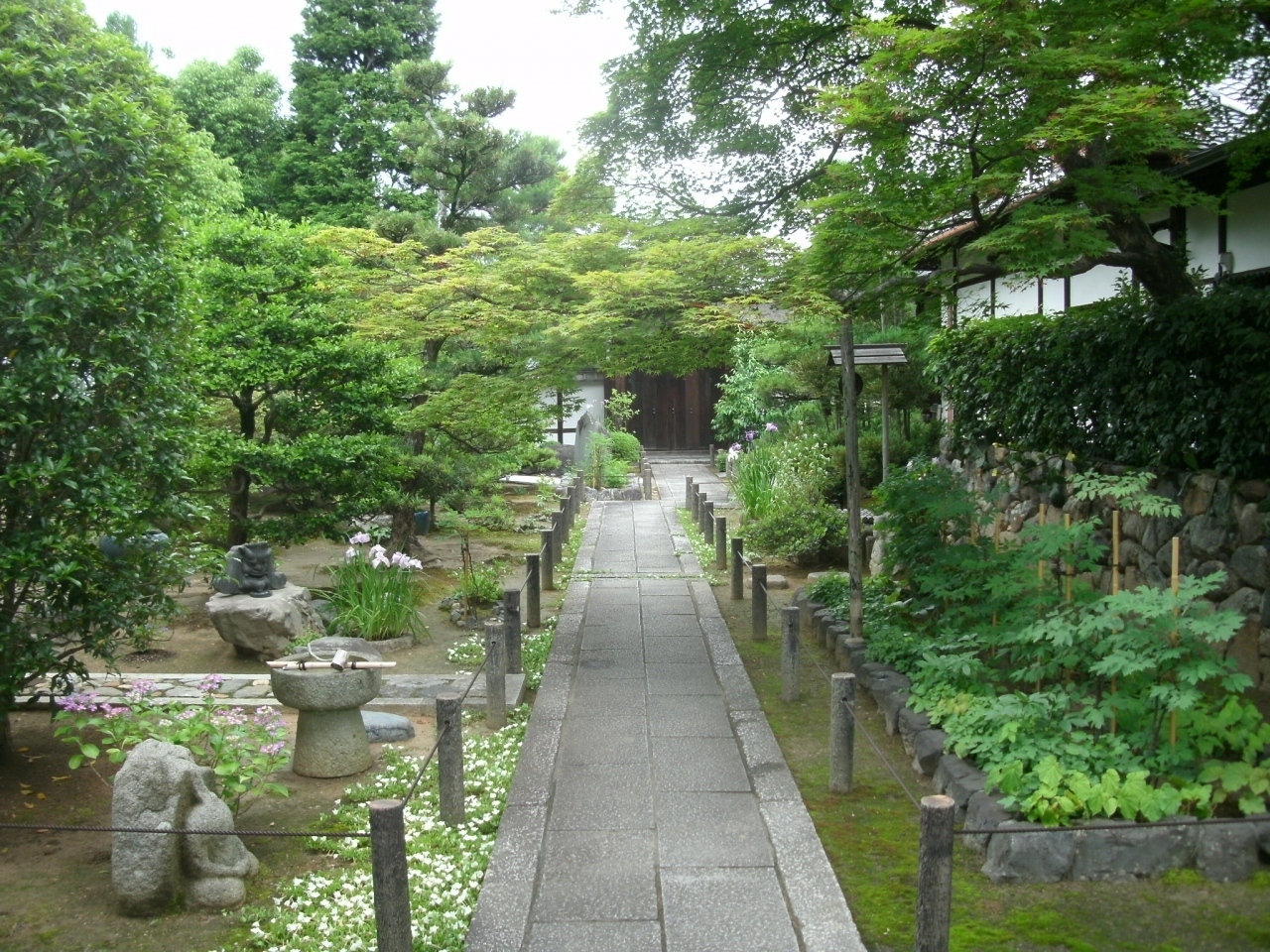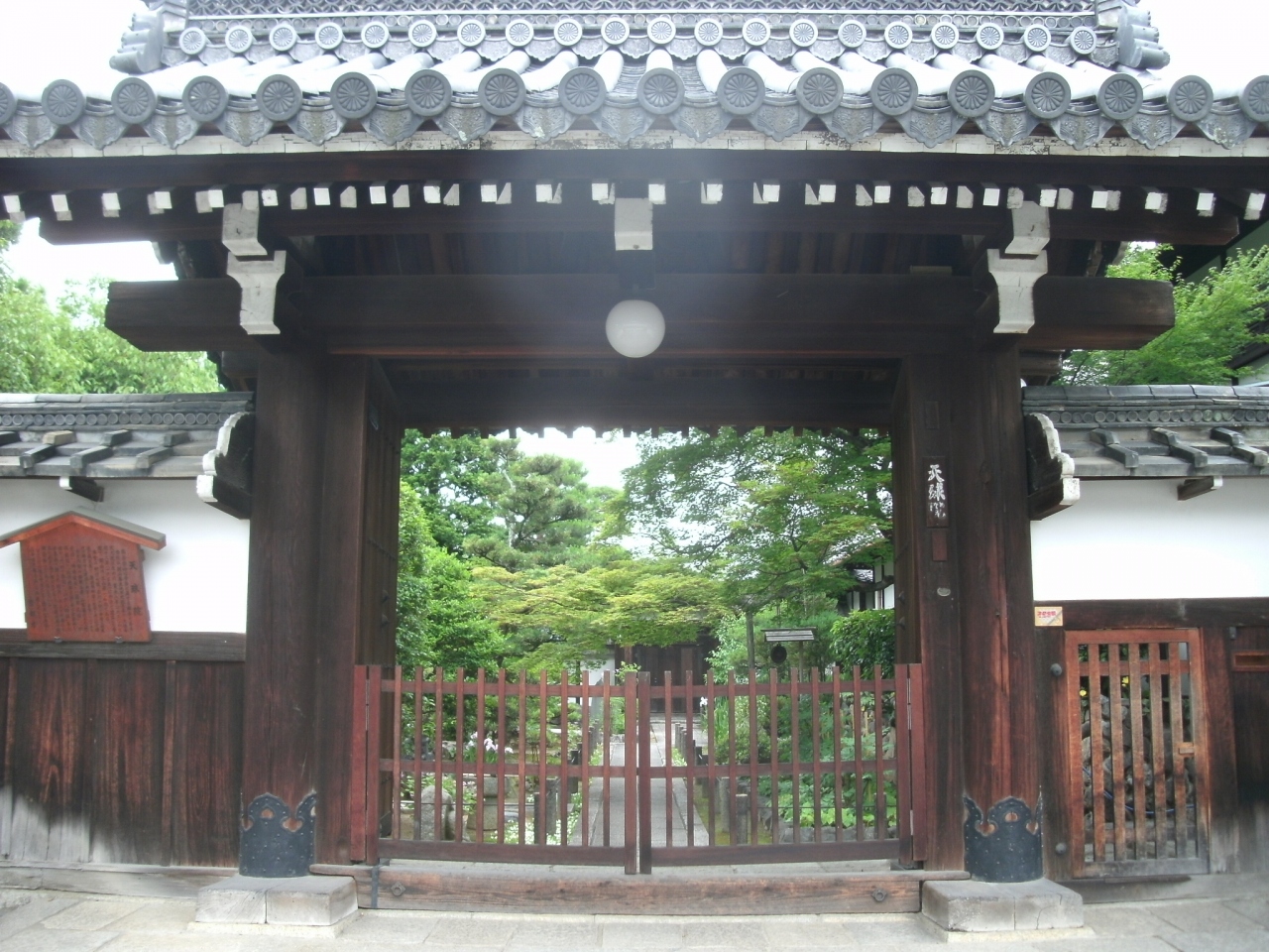 狩野山楽・山雪の作といわれる襖絵と杉戸絵で有名なお寺さんですが、通常は非公開で、特別公開の時にしか参拝できません。山門から中を覗き込むと、綺麗に整えられた庭を見ることが出来ました。
