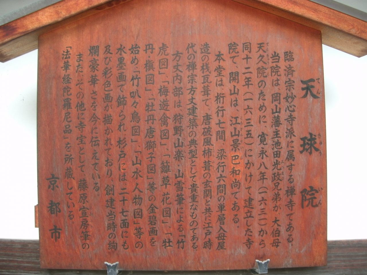 寛永8年(1631年)岡山藩主池田光政が伯母天球院のため建立したもの。