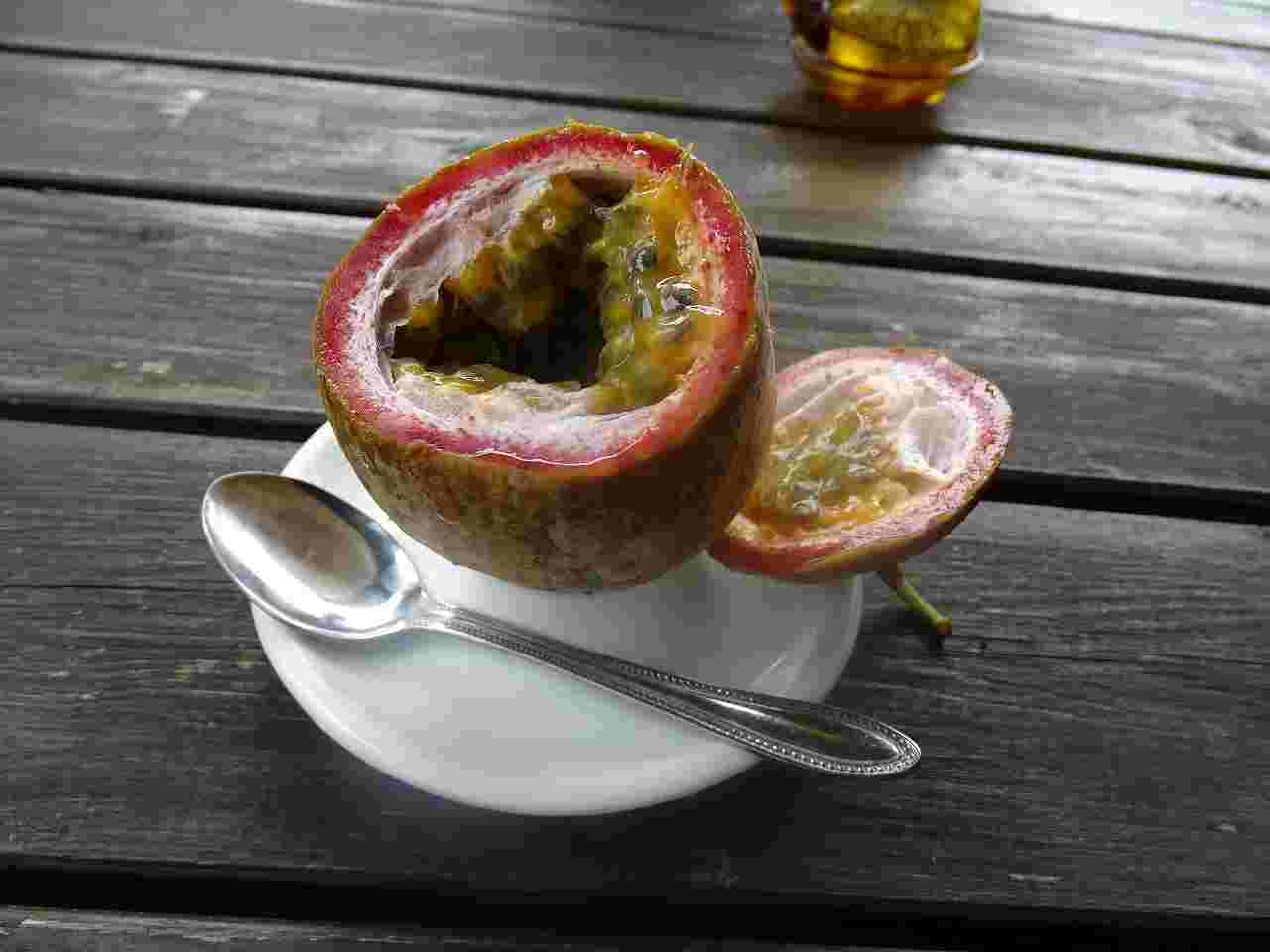 パッションフルーツジュースはお店で売っている濃縮ジュースを薄めて加糖したもので、頂いたジュースは チョット加糖し過ぎ だったのが残念でした。