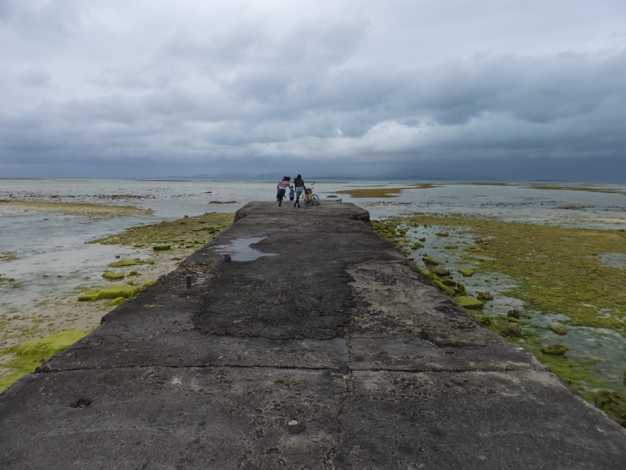 夕陽のメッカとしてしられており、竹富島に宿泊すると必ず宿ごとにこの場所に夕陽を見に来ます。夕陽がない時は単なる桟橋ですが、昔々はここから西表島などに農作業に出ていた(西表島には風土病(主にマラリア)があり定住が難しかった)という歴史的な意味合いもあります。「西桟橋 ライブカメラ」で現在も様子が見れるのも、帰って来てからまた楽しいです。