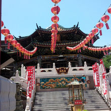 きらびやかな外装と鮮やかなブルーが台北の龍山寺を彷彿とさせます。