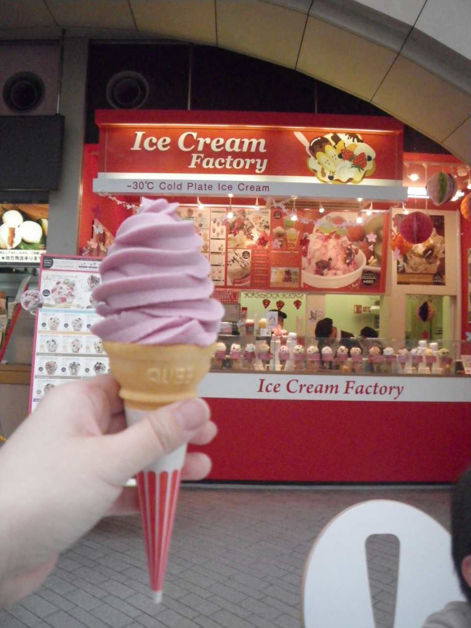 サッポロファクトリーのアトリウムにあるアイスクリーム屋さんです。結構人気のようで、常にお客さんがいる様子でした。コールドストーンのように冷たいプレートの上でアイスをまぜまぜしてくれます。が、今回は子供のリクエストでブドウのソフトクリームを注文。ごくごく普通に美味しかったです。