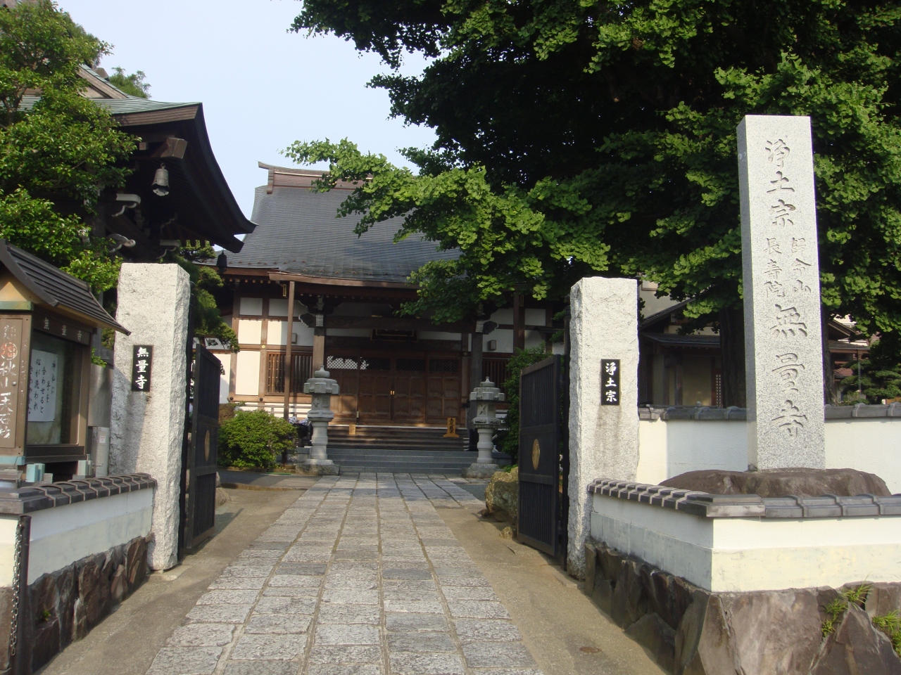 無量寺は大山道沿いにあり、境内には大山道の道標を兼ねた名号碑があります。またイチョウの古木や、寛政六年(1794)造立の「出羽三山・西国・板東・秩父百番札所」供養塔、元徳年間に造立された板碑などがあります。晴れた日は境内から大山が良く見えます。