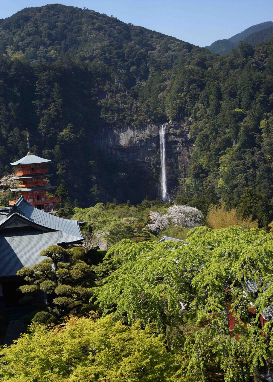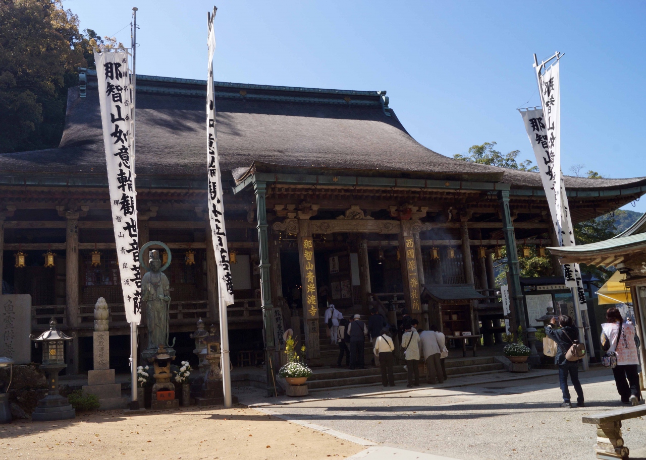 西国三十三ヶ所巡礼の一番札所“青岸渡寺”は世界遺産・熊野信仰の聖地にあり、古くから日本独特の宗教観の神と仏がともに宿るとされ、多くの高僧や上皇が修行や行幸で訪れている。大和の生仏上人が建立したといわれる如意輪堂が一番札所となる。境内からは前面に那智大滝が望まれる。