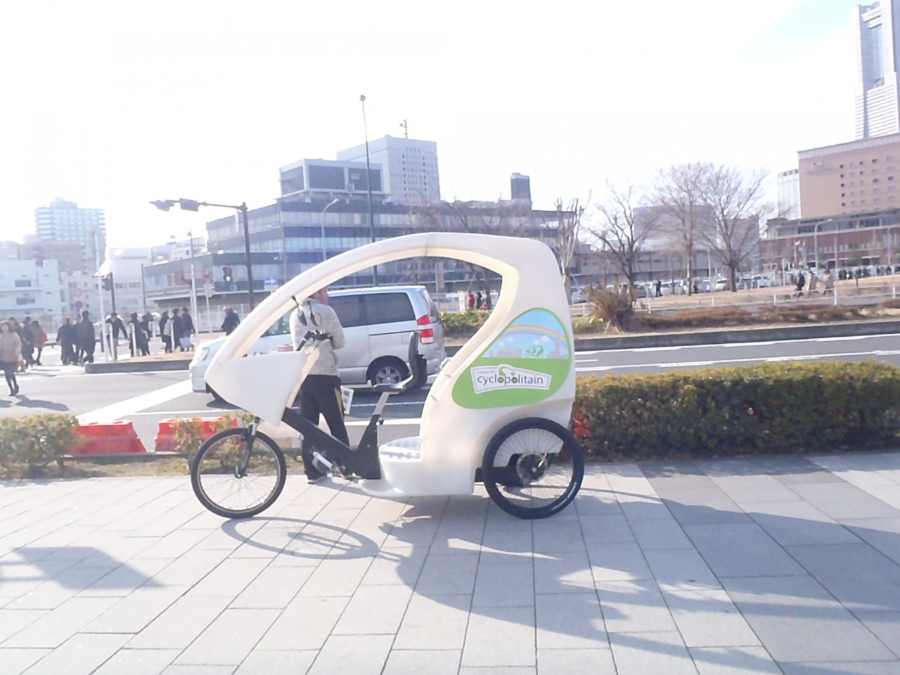 最近観光スポットを移動するのによく使われている自転車と、言っても自分でこぐような自転車、海外でよく見るようなタイプでもない自転車がシンクロポリタンです。