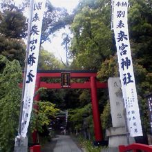 JR伊東線来宮駅から徒歩5分程、東海道線の線路わきにある神社です。