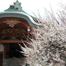 楼門をくぐると右側に宝物殿があります。重要文化財になっている東門をくぐると社務所、そのお隣です。艶やかな朱塗りの宝物殿には国宝の絵巻や重要文化財の長谷川等伯作の絵馬などお宝が観覧できます。有料ですが格安で歴史に纏わる品々が鑑賞できました。