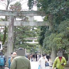 北野天満宮には鳥居が幾つかあります。ここでいう鳥居はどこのことでしょうか。まず今出川通からは北野天満宮の正面入り口には大きな石鳥居が一ノ鳥居になります。どっしりとした風格です。参道には露店たくさん出店していてにぎやかです。