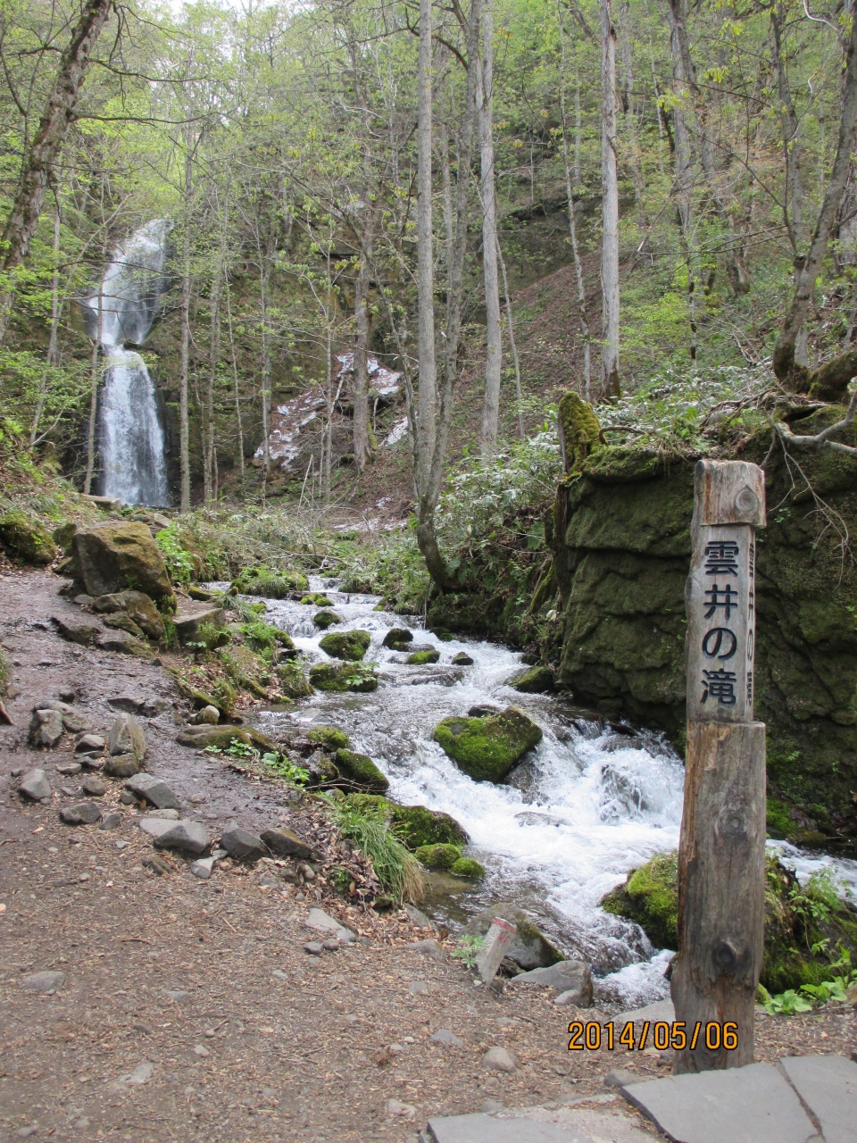 奥入瀬渓流沿いにはJRバスが運行しており、ちょうど「雲井の滝」というバス停があるのですぐに分かります。奥入瀬渓流から道路を渡った所にあります。3段になっている滝で道路から中に入って行くと、滝のすぐ近くまで行く事ができます。