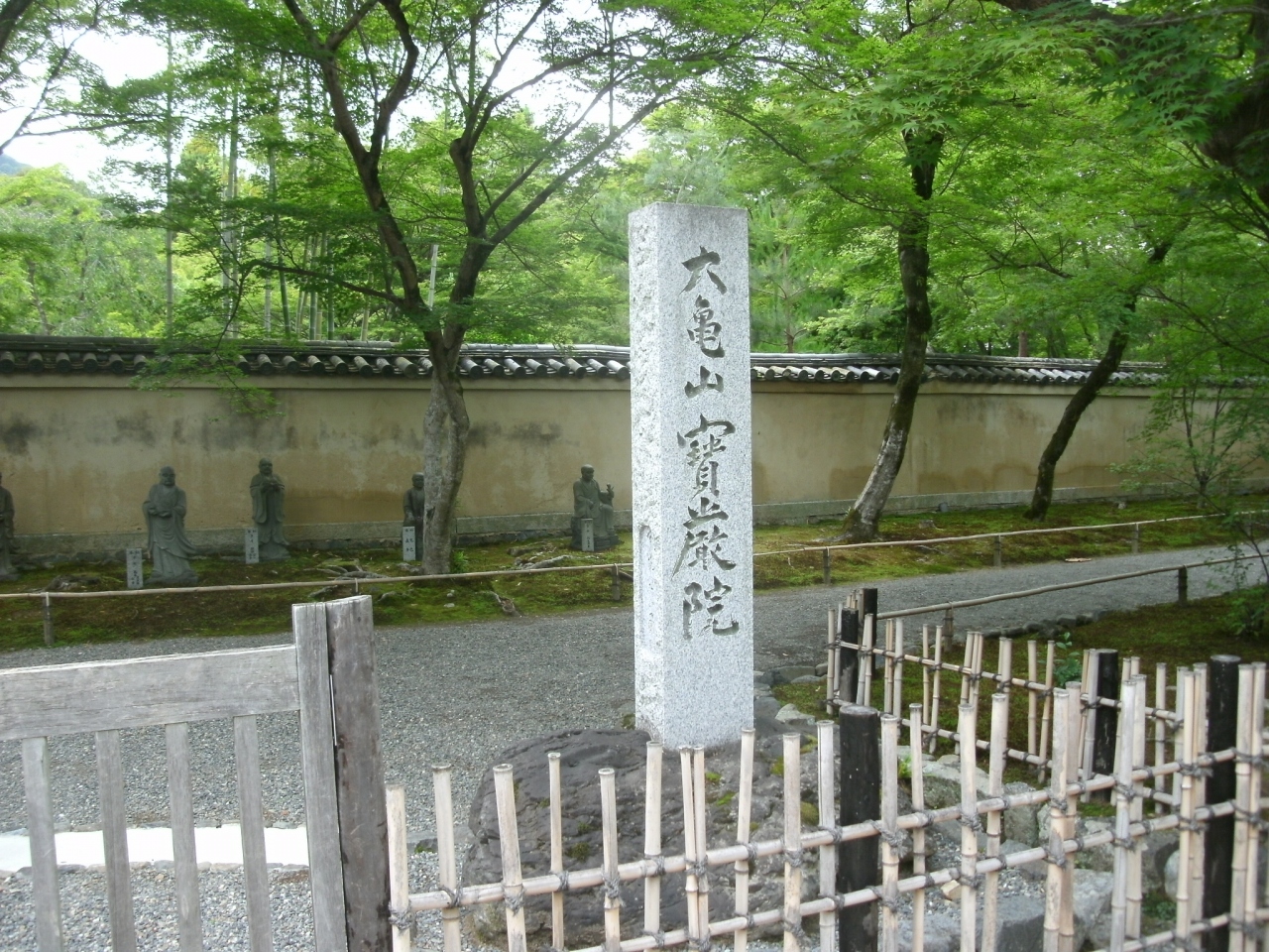 嵯峨野線「嵯峨嵐山駅」から南西へ歩いて10分ほどのところにあります。天龍寺の塔頭寺院のひとつ。策彦禅師作の広大な敷地の回遊式枯山水庭園が見所のお寺さんです。綺麗な参道がとても印象的でした。通常は非公開になっていて、特別公開のときだけ参拝することが出来ます。