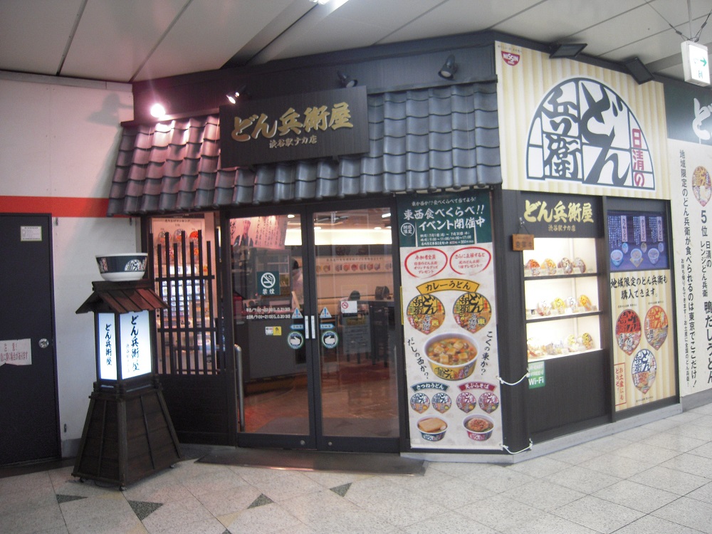 JR渋谷駅の山手線ホームにある、どん兵衛のアンテナショップという感じのお店です。店内に入ると食券機があり、JR構内ということでSuicaも使用可能です。基本的なメニューはどん兵衛のみで、地方限定のどん兵衛もあります。食券を厨房のお姉さんに渡すと、注文が通り、トレーに出てきます。砂時計も置いてあり、これで時間通りに開けられます。