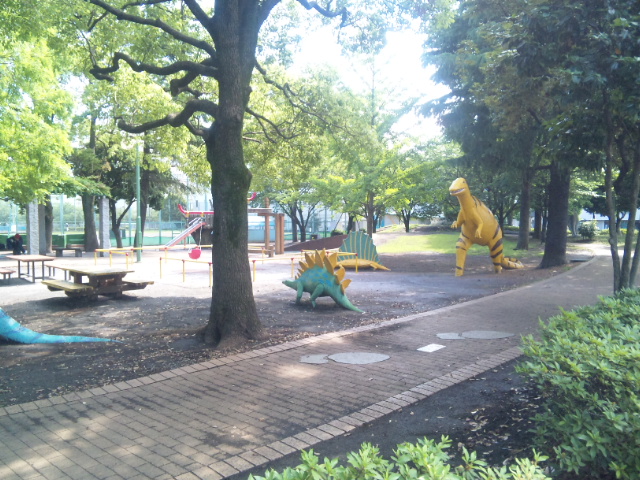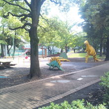 恐竜のオブジェがたくさん置いてあって、子供が大好きな公園です。