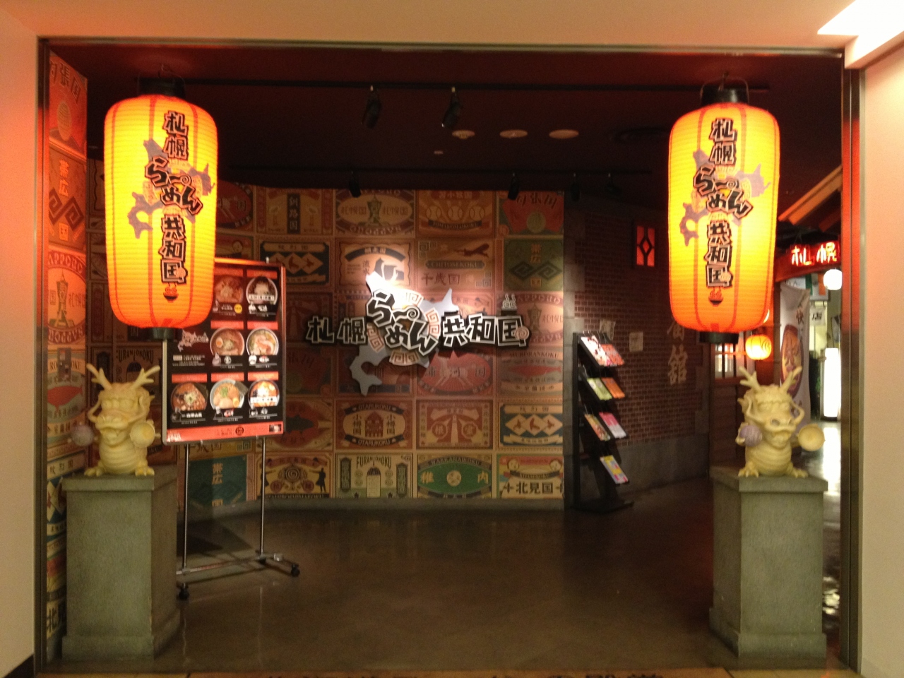 札幌駅直結のビルにある北海道ラーメンのテーマパーク。昭和の街並みを再現したような雰囲気の中に、北海道各地の人気ラーメン店8軒が並んでいました。夕飯時になると、各店前に列ができていました。おなかに余裕があれば、はしごするのも楽しそうです。