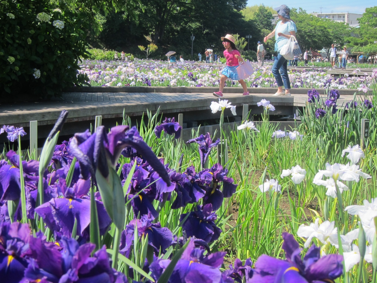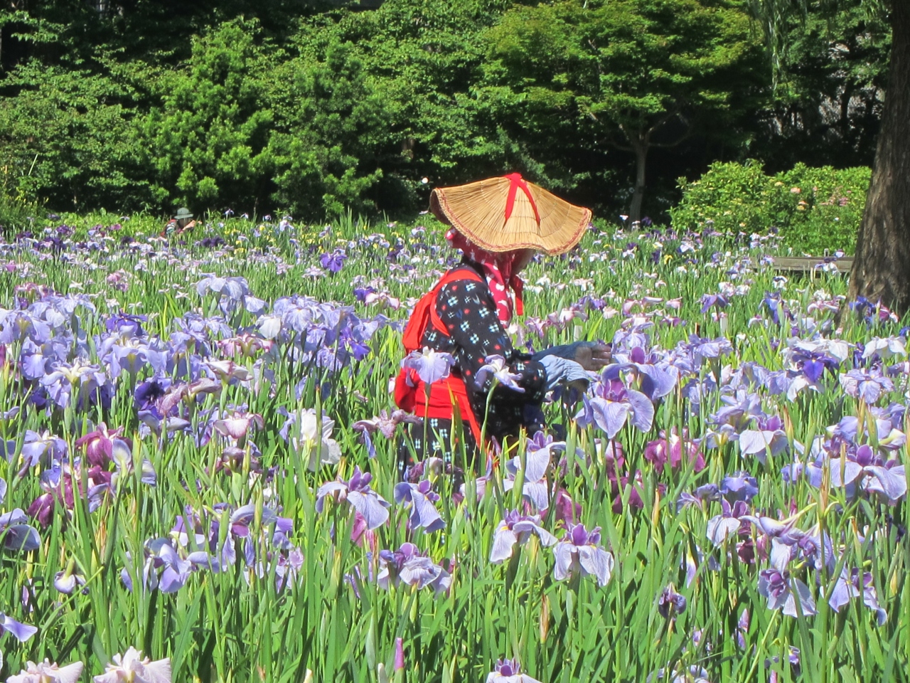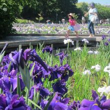 ちょうど菖蒲娘?の方々が花摘みをしていました。その点、相模原公園のしょうぶ娘の方がかなり若くてきれいだったですよ~。