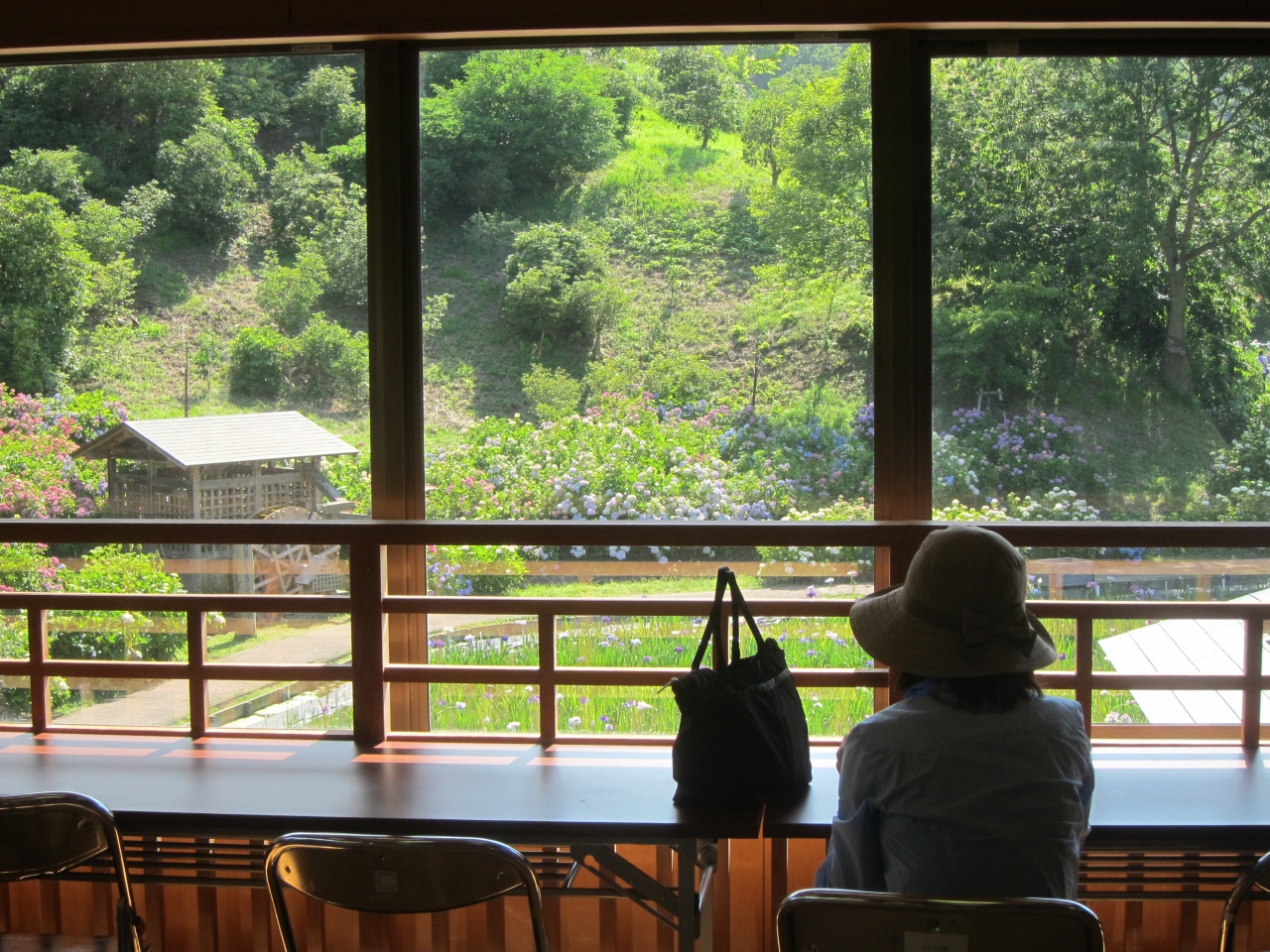 しょうぶ園は付近の丘陵地の地形を活用していて、園内の高台から菖蒲田を見下ろすこともできます。高台まで、坂や緩やかな階段で行けますが、菖蒲田のあたりは平地なので、お年寄りや子どもでも、ゆったりと散策することができます。