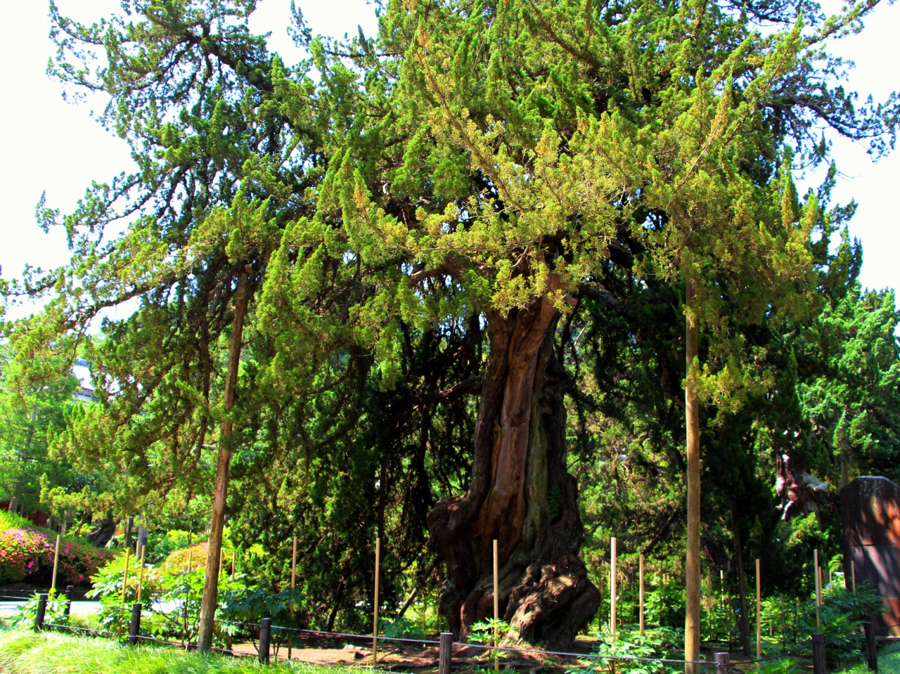 西暦700年代に植えらえたとされる古木は、その幹や樹皮をねじらせ、堂々たる姿を見せてくれます。