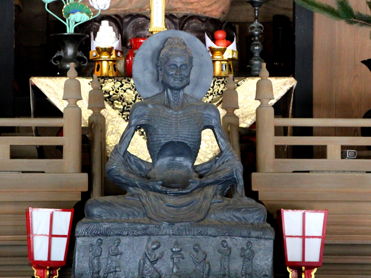 極限の苦行をしている釈迦様の荒行の姿を現していますが、お釈迦様のお顔はとても穏やか。