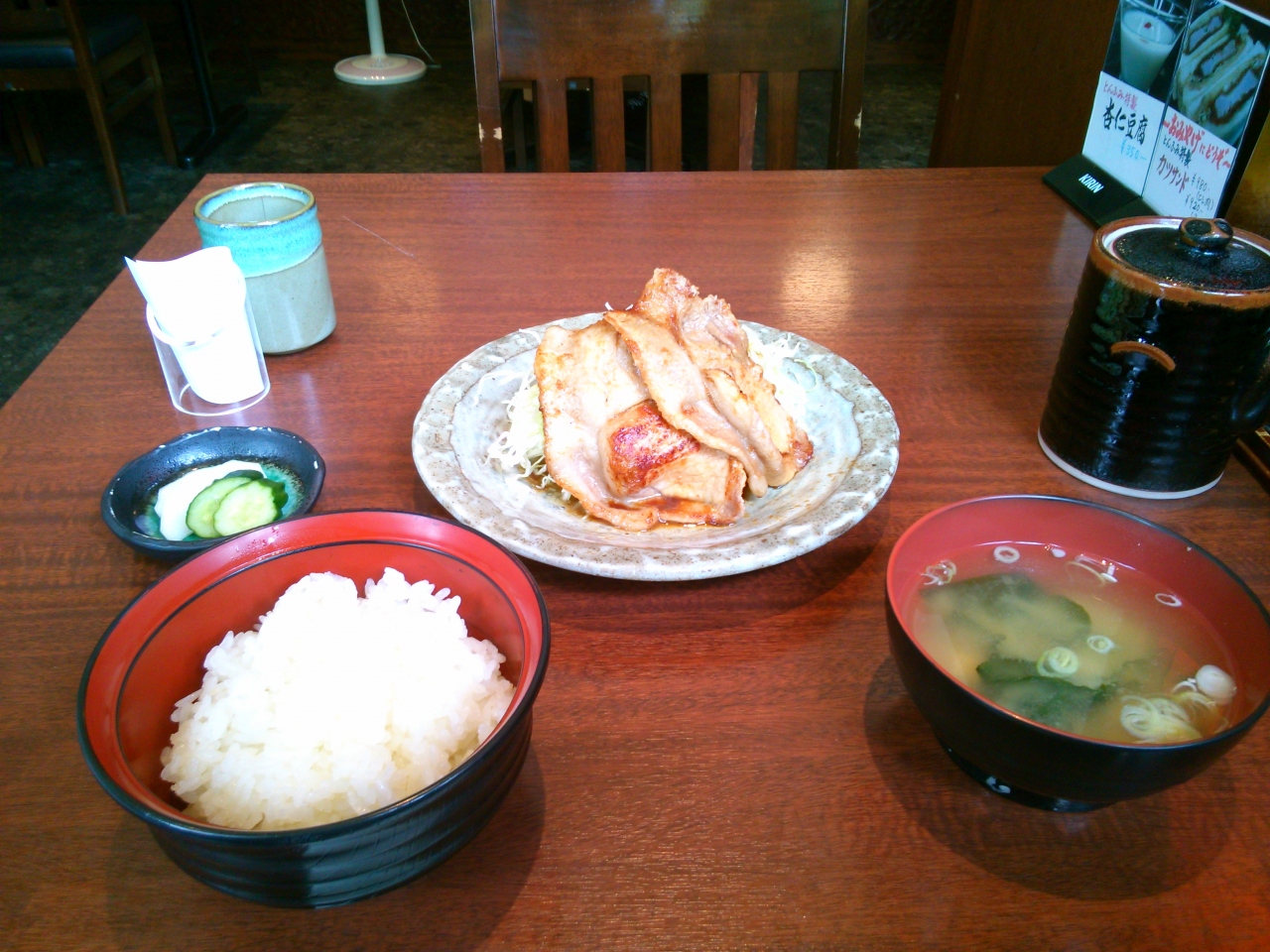 ランチで豚の生姜焼き定食を頼んだのですが、脂身も含め濃厚でとろけるような旨み。