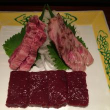 先ずは、三点盛合せ(ハラミ・レバー・タン)を注文。
